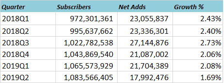 2019年第二季度,全球固定宽带用户增长率为1.69%,全球固定宽带用户连接数达10.8亿户。