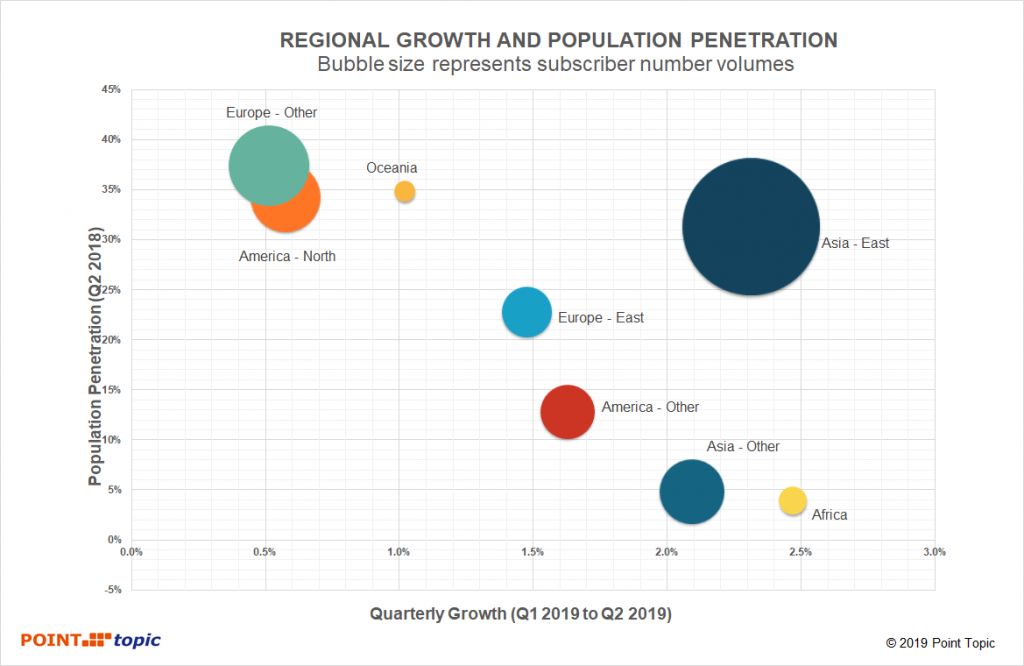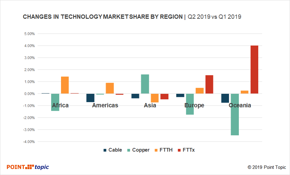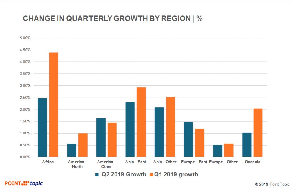 2019年第二季度全球固定宽带的主要趋势: